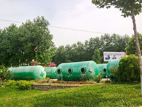 玻璃钢化粪池使用高分子材料与高强度玻璃钢纤维复合制成的圆筒型整体化粪池,与传统砖混化粪池相比,具有严密性好不渗漏、质量轻易于运输、抗压强度高、耐酸碱使用寿命长、安装快捷等优点。圆筒形化粪池有效利用体积大,筒体中及两端有T字型加强筋,两端外用车轮型封头,凹凸面设计。这种结构可以提高池体的强度及水压强度。池体上部设有进出水和清污孔,池内用膜隔仓分成一等级沉淀池、二级沉淀池和处理池三部分。隔舱板上设置有填充污水处理填料的填料箱,填料为具有弹性的维纶丝束。